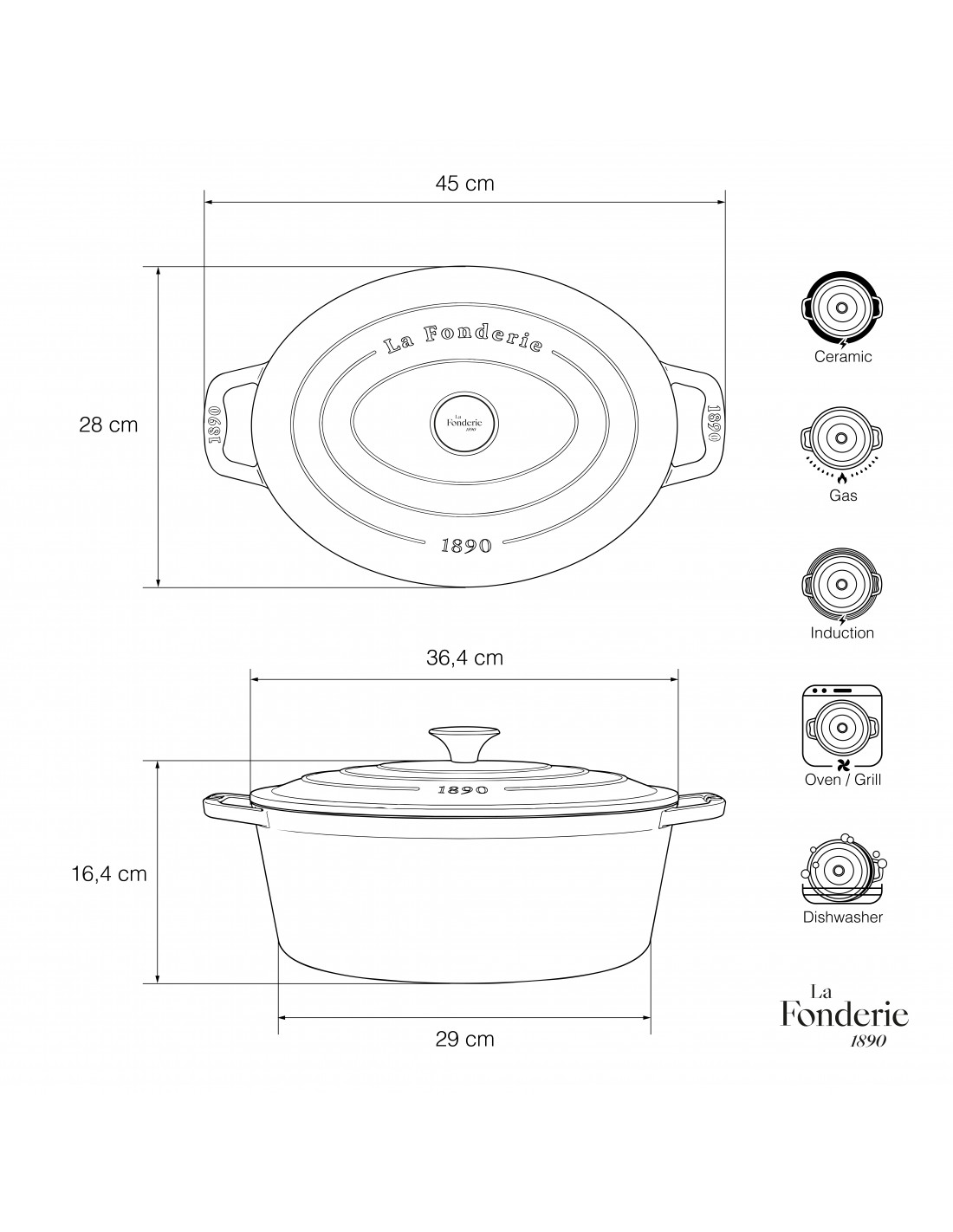 La Fonderie 1890 IENA36 - Cocotte en fonte ovale 36cm beige