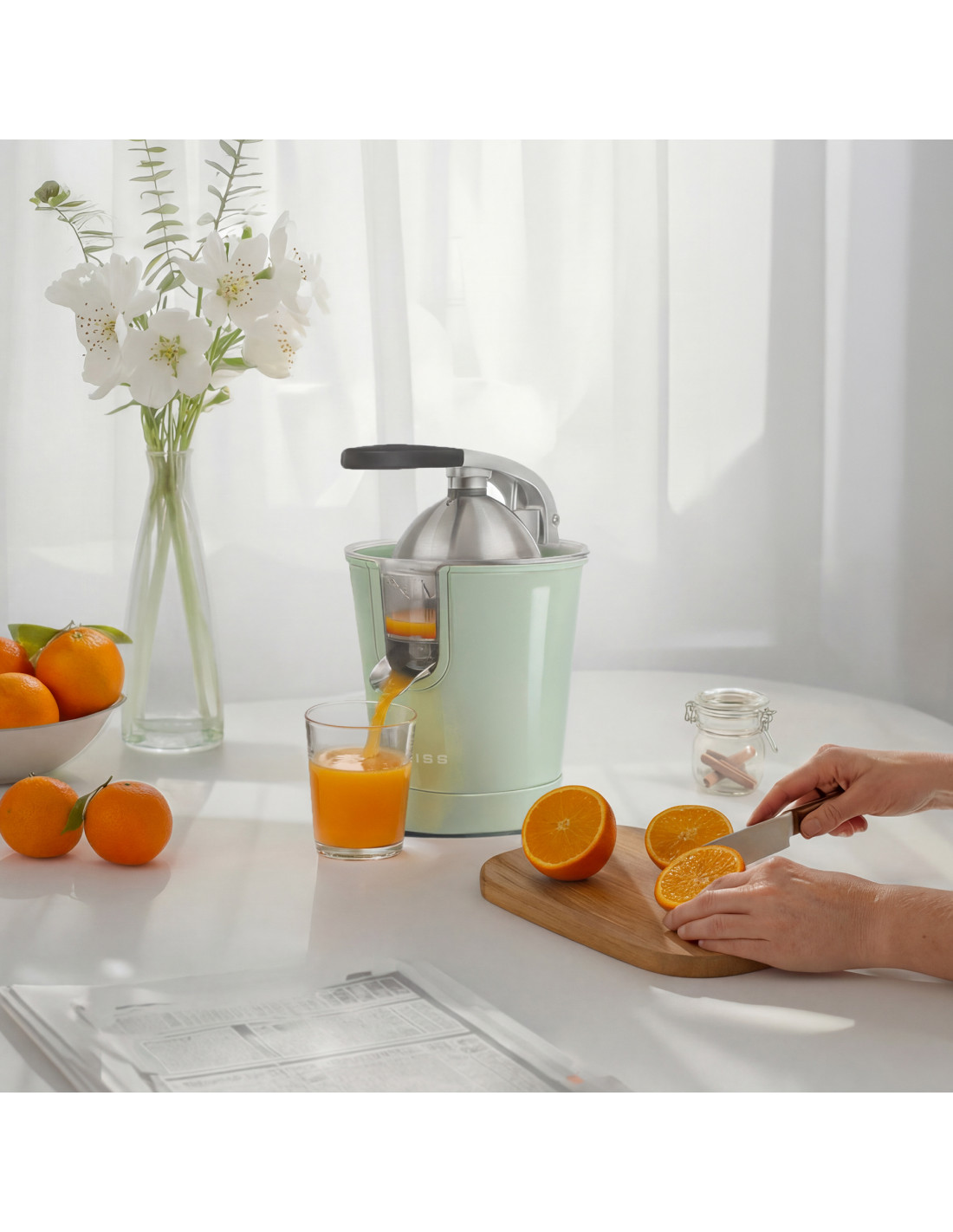 Réalisez de savoureux jus et faites le plein de vitamines avec le presse-agrumes électrique ZEST de SWEISS.